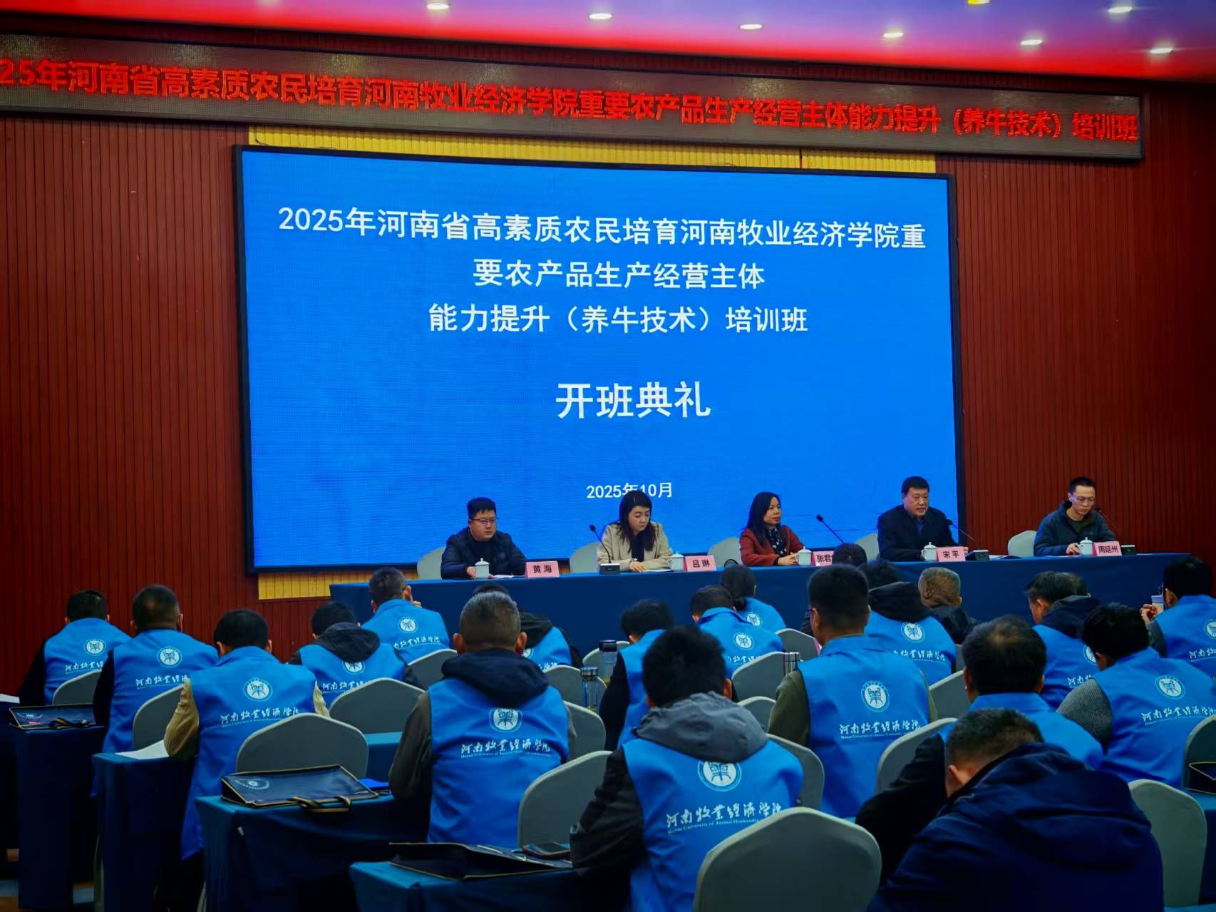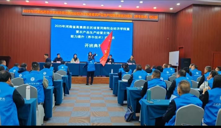 2025年10月27日上午,我校承办的河南省2025年高素质农民培育农业经理人培训班开班典礼在河南现代农业研究基地报告厅隆重举行。继续教育学院党总支书记张君华、院长宋平、副院长周延州等相关同志及接受培训的全体学员参加了开班典礼。开班典礼由继续教育学院副院长周延州主持。